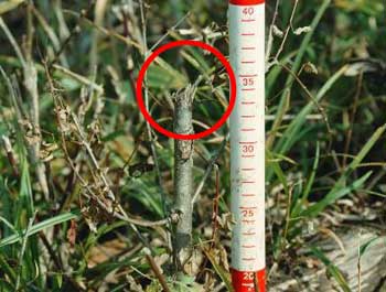 これらのことから、手鎌を用いた坪刈りが両方の被害を抑えるのに最も有効な下刈り方法だと考えています。条件が許せば、ツリーシェルターも強力な武器になるでしょう。実は、もっと確実に下刈りに起因する被害をなくす方法があります。それは、下刈りをやめてしまうということです。それが可能かどうか、来月号で考えます。