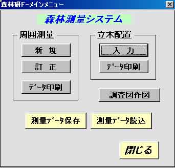 このシステムは、コンパス測量による前進法での周囲測量と放射法による立木位置測量の処理と図化を行うものです。