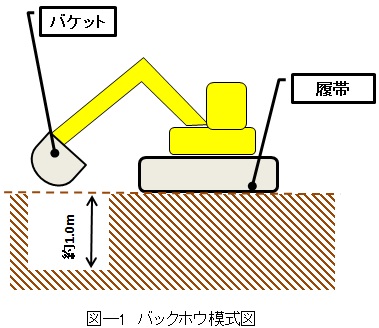砂質土の地盤に深さ約1.0mの穴を掘り、締固め条件を変えた時の盛土の硬さを測定しました。締固め条件は、締固め方法を統一し層の厚さを変えたもので3種類としました (表―1)。なお、締固めには、森林作業道の作設を想定し、バックホウ(バケット容量0.09m3,機械重量3.2t)を用いました。